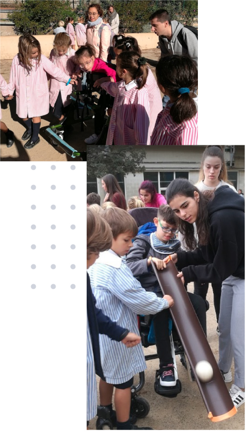 Nuestros alumnos acompañan a los alumnos de Nadís a la hora del patio para que compartan este espacio lúdico y de aprendizaje facilitando la inclusión de todos los niños mediante el juego.